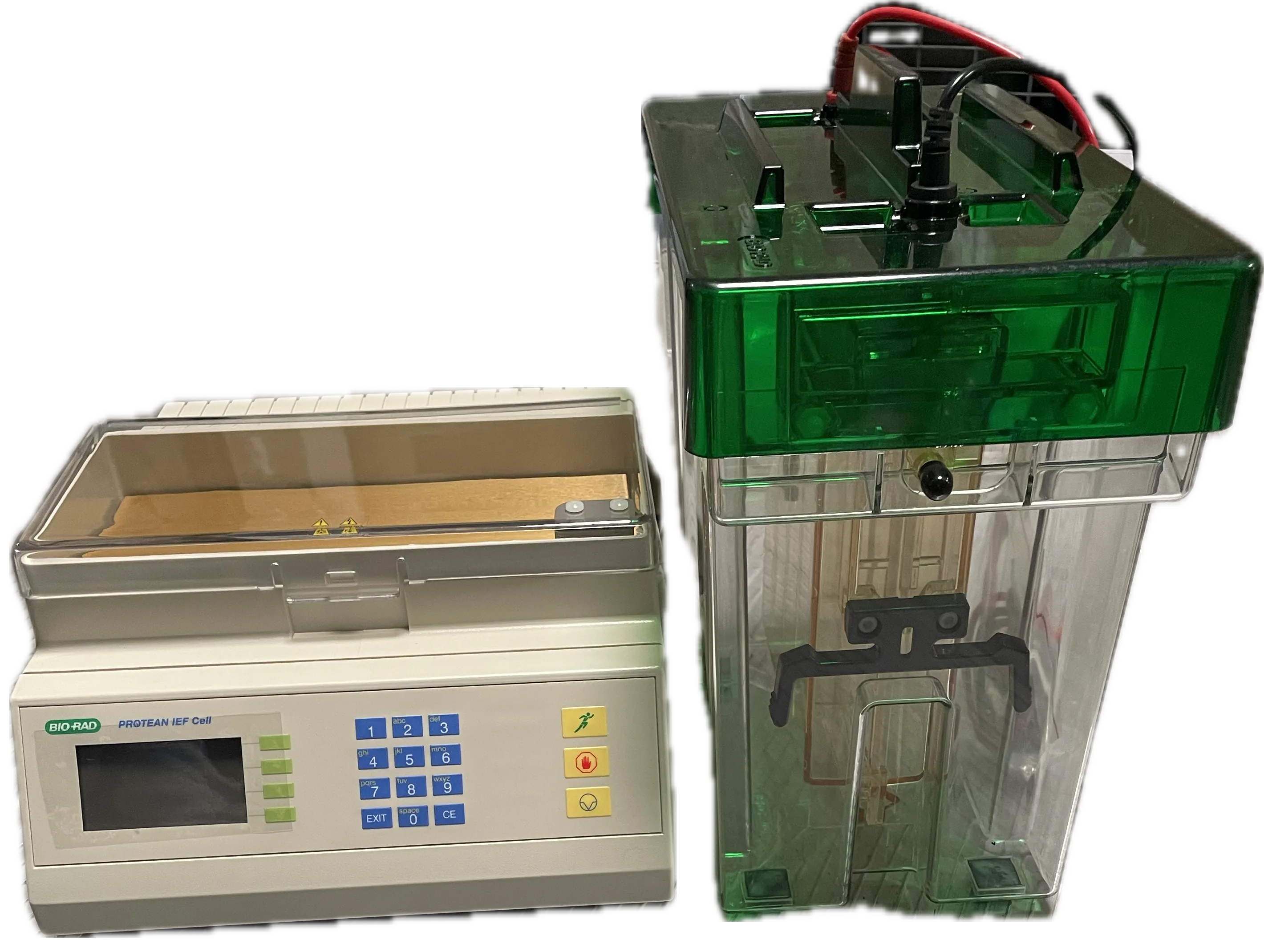 Le Bio‑Rad Protean IEF Cell est un instrument spécialisé utilisé pour la focalisation isoélectrique (IEF), une technique essentielle de la première dimension dans l’électrophorèse bidimensionnelle des protéines. Il est conçu pour permettre la séparation de protéines selon leur point isoélectrique (pI) en utilisant des ** bandes de gel à gradient de pH immobilisé (IPG strips)**. Grâce à une plateforme de focalisation à température contrôlée par effet Peltier, l’appareil assure des conditions thermiques stables pour des résultats reproductibles.